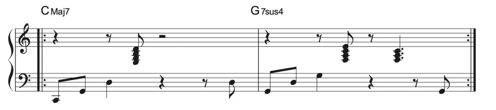 まずはシンプルに:CMaj7とG7sus4の刻みで